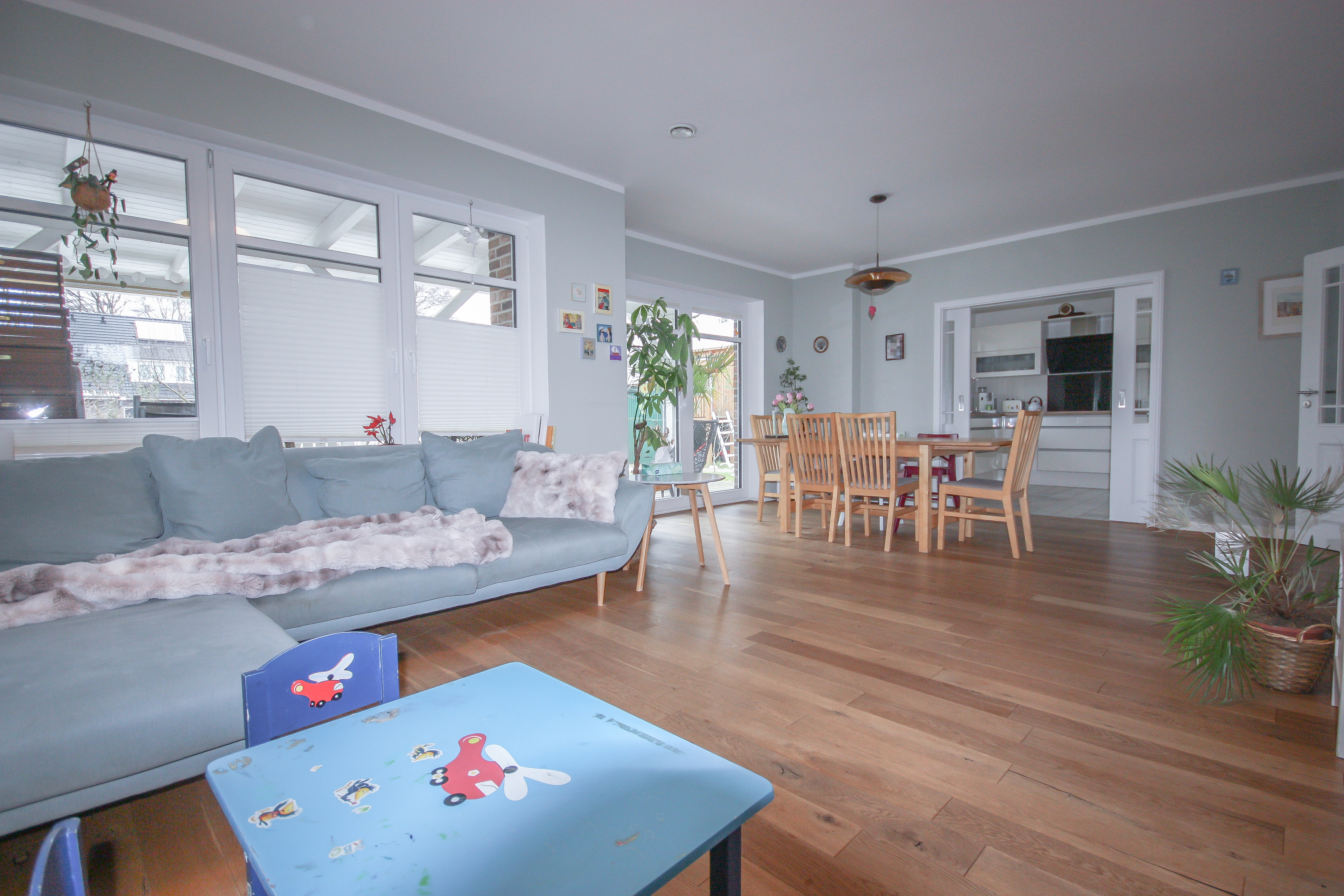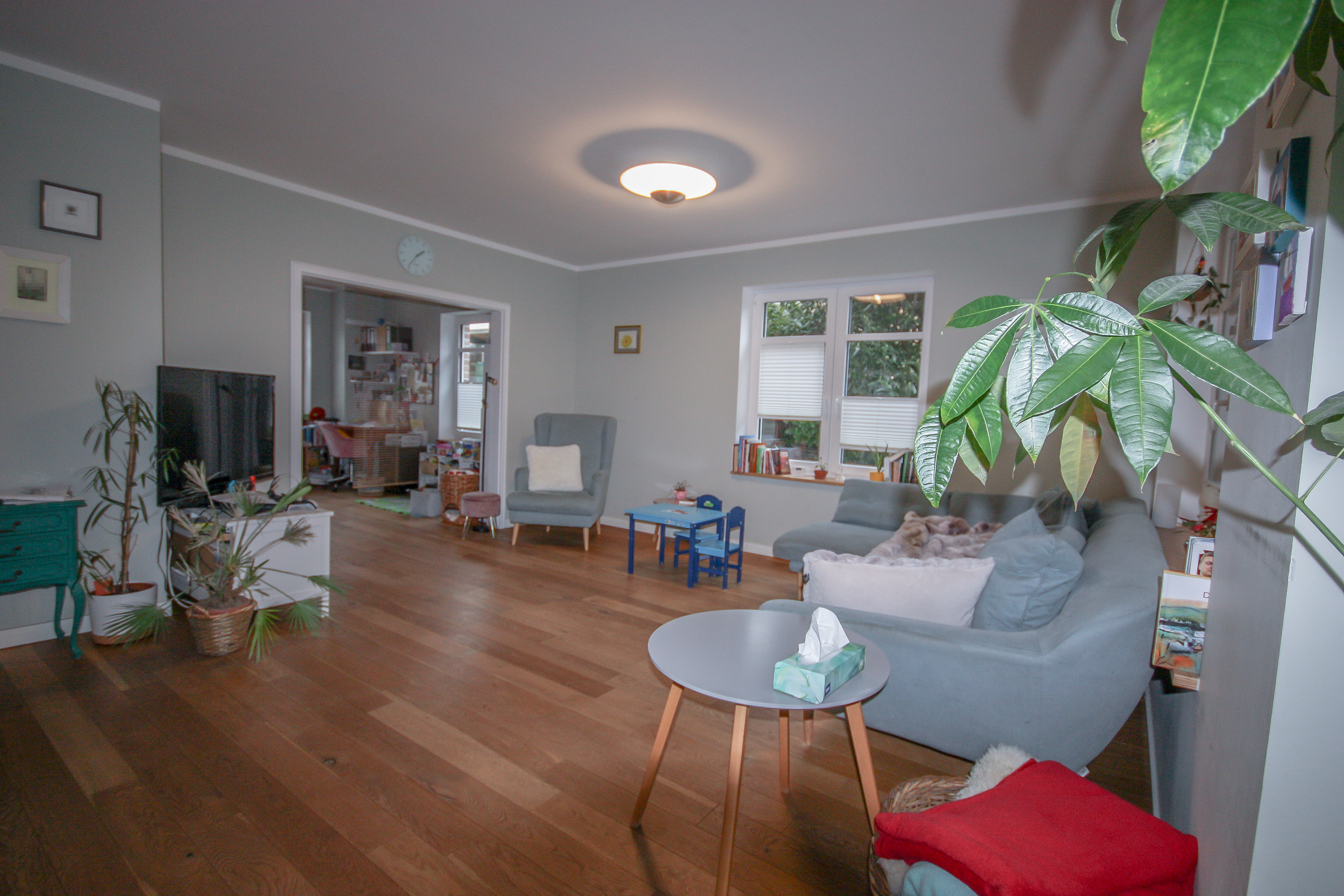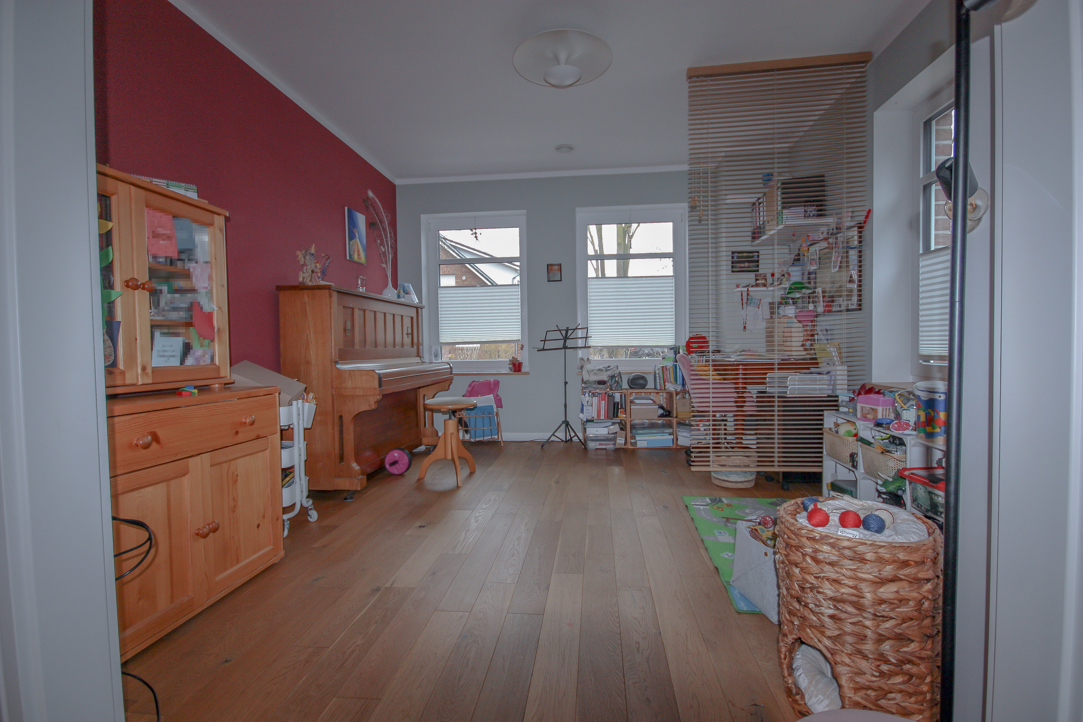 Offen an das Wohnzimmer anschließend liegt ein weiteres Zimmer, welches sich flexibel nutzen lässt. Ideal als Kinderspielbereich, Arbeitszimmer oder auch zur Erweiterung des Wohnzimmers.