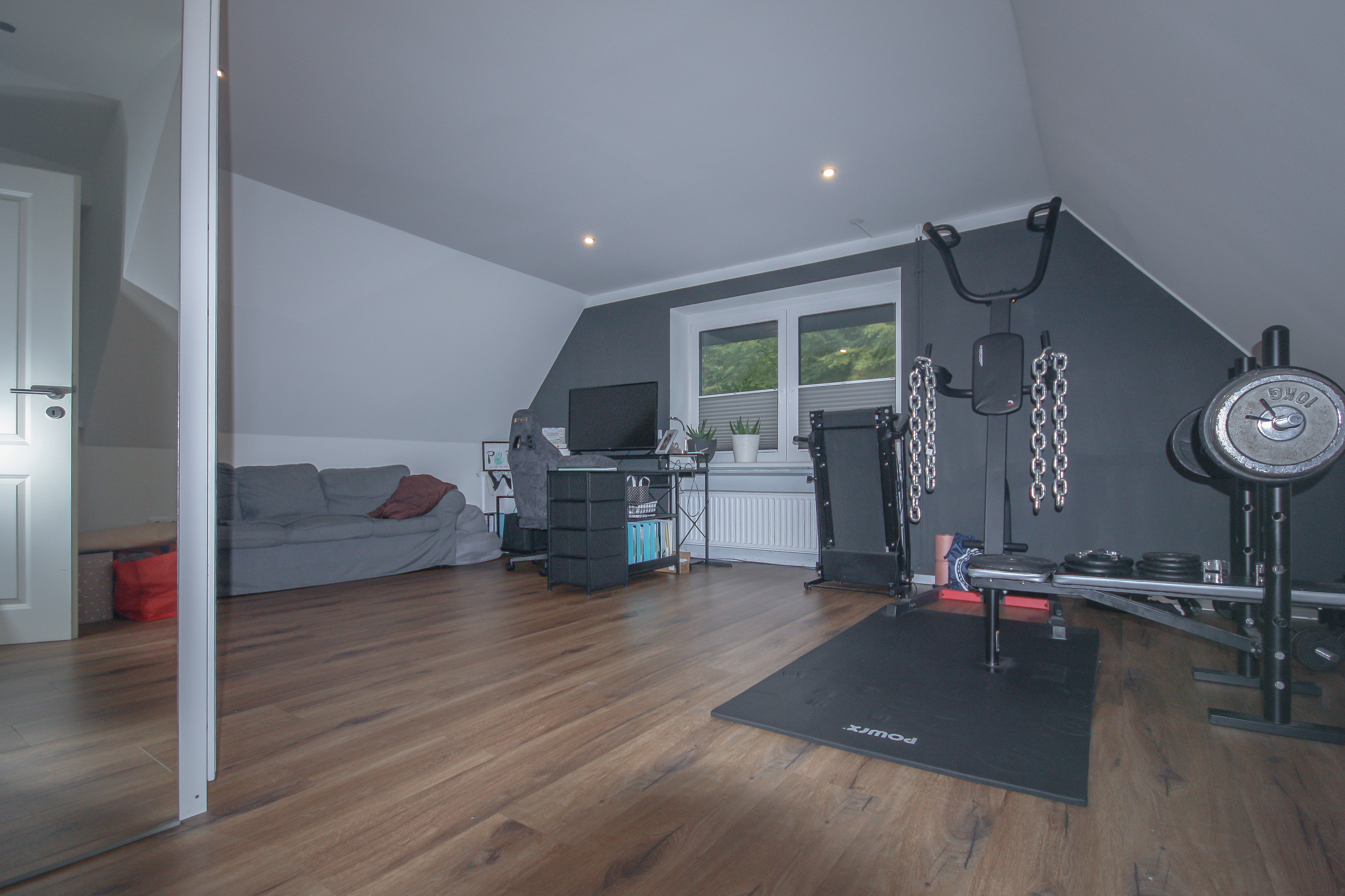 Das ausgebaute Dachgeschoss bietet zwei weitere Zimmer, die sich ideal als Kinder-, Gäste- oder Arbeitszimmer eignen.