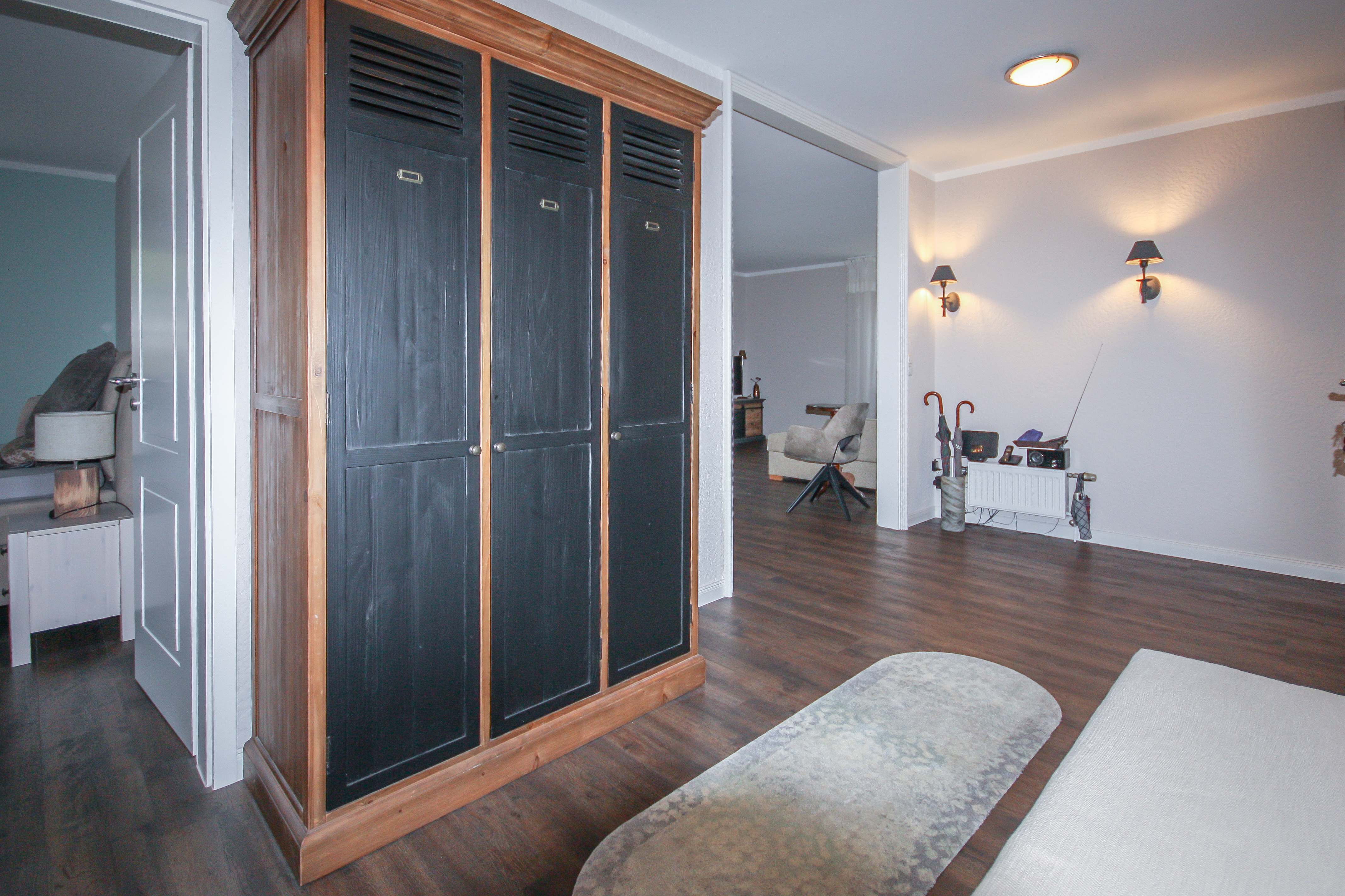 neuer Anstrich – Wände, Decken, Heizkörper, neue Türblätter, Erneuerung Lichtschalter, Neueinrichtung Steckdosen, neuer Vinylfußboden