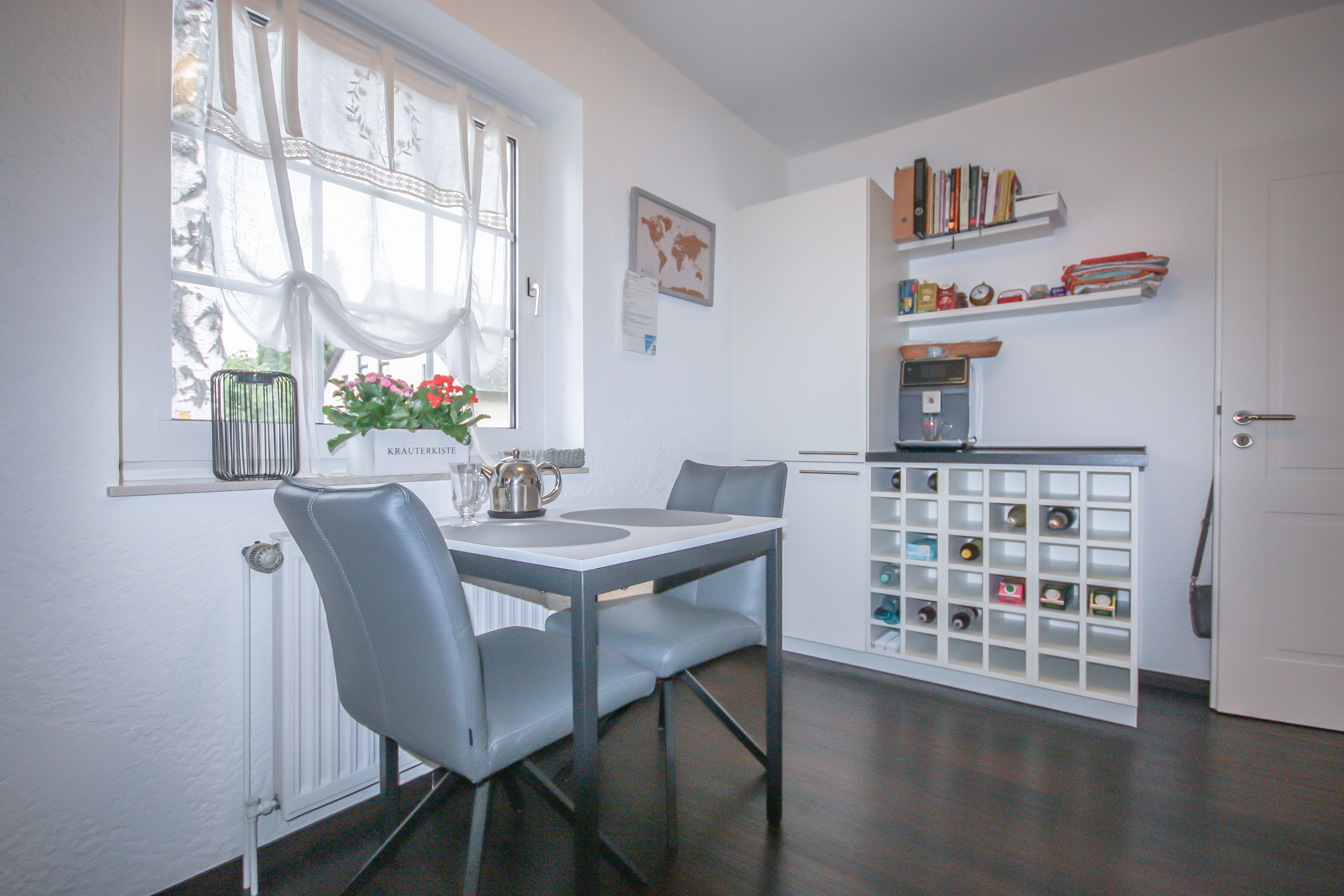 Siemens-E-Geräte. Besonders praktisch ist der angrenzende Hauswirtschaftsraum. Hier finden Waschmaschine und Trockner ihren Platz und dank eines Fensters ist der Raum hell und gut belüftet. Auch die Etagenheizung ist hier untergebracht, was den Raum zusätzlich funktional macht. Ausreichend Platz für Vorräte und Haushaltgeräte ist ebenfalls vorhanden.